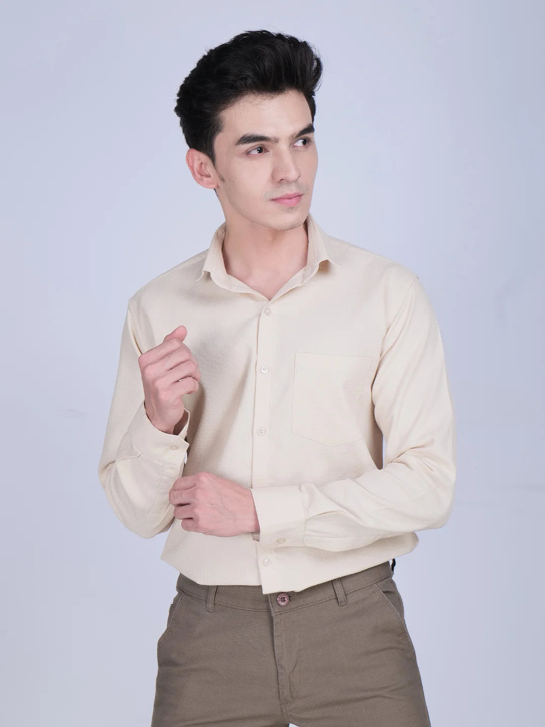Elevate your everyday style with Lavith’s Light Beige Formal Shirt for men. Crafted from premium cotton, this shirt ensures all-day comfort and breathability. Its crisp design, subtle texture, and tailored fit make it ideal for both office and casual settings. The neutral beige tone pairs effortlessly with dark trousers or chinos, giving you a versatile piece for every wardrobe.