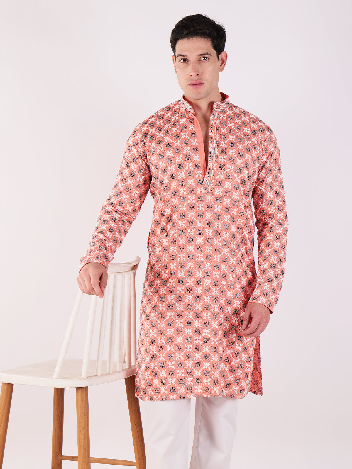 - Styled with a classic mandarin collar and elegant button placketFull sleeves and side slits ensure a traditional yet contemporary silhouette