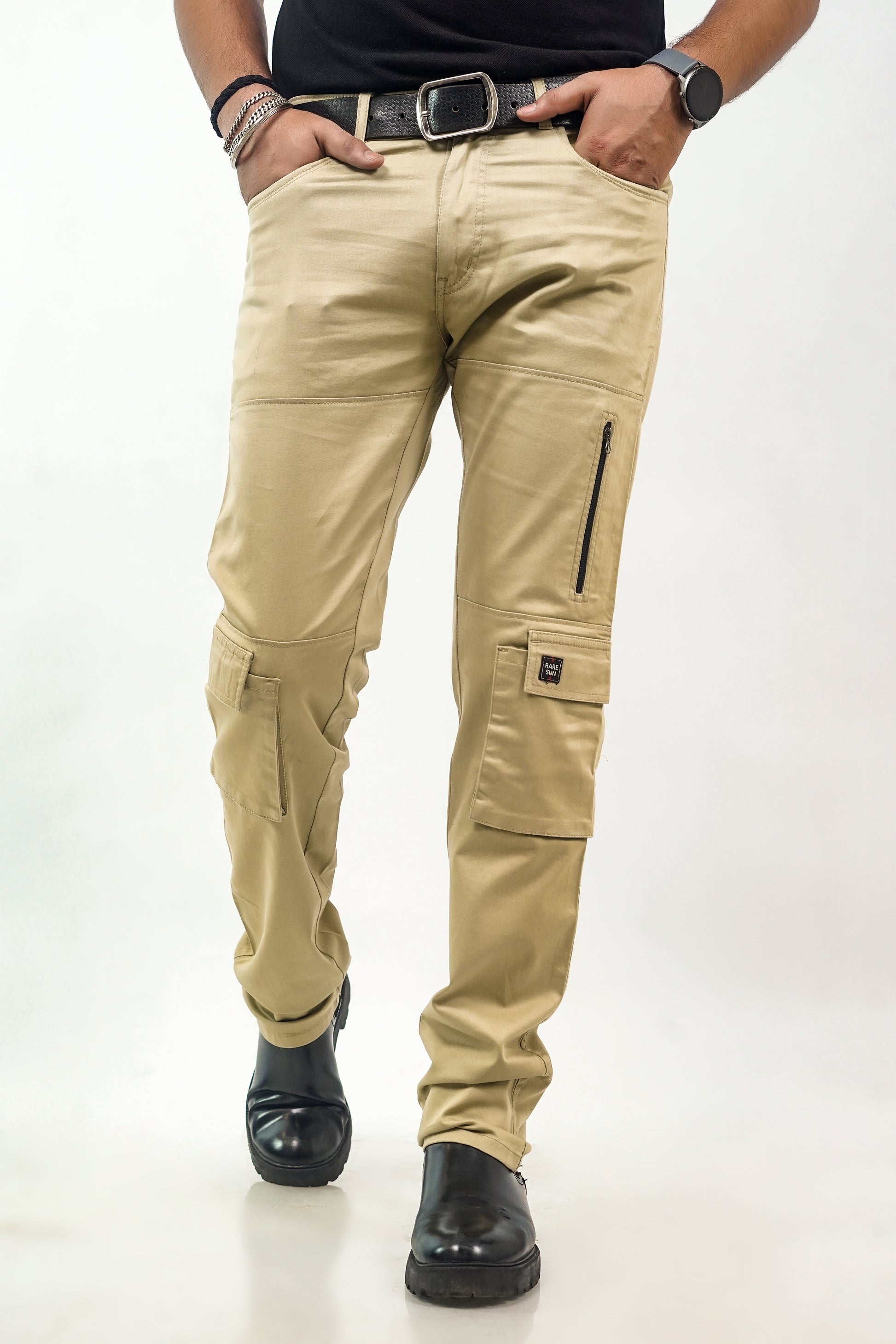 Built for versatility and edge, these sand beige cargo pants feature functional side pockets, zip detailing, and a tailored fit — perfect for street-style looks or rugged casual wear.