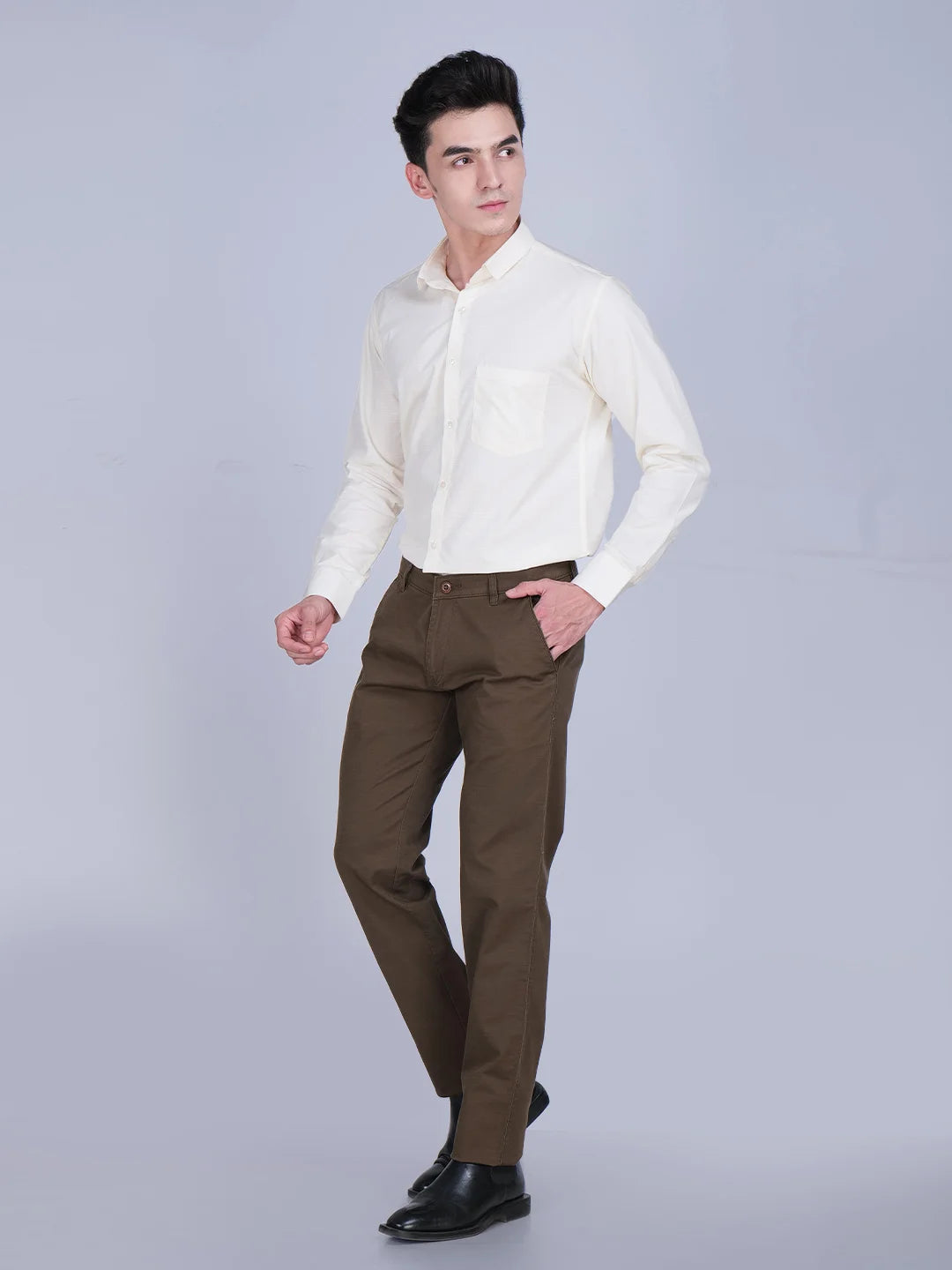 Ivory Shirt Brown Trouser Combo