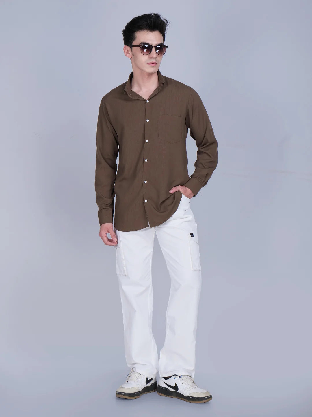 Brown Shirt White Cargo Pants Combo